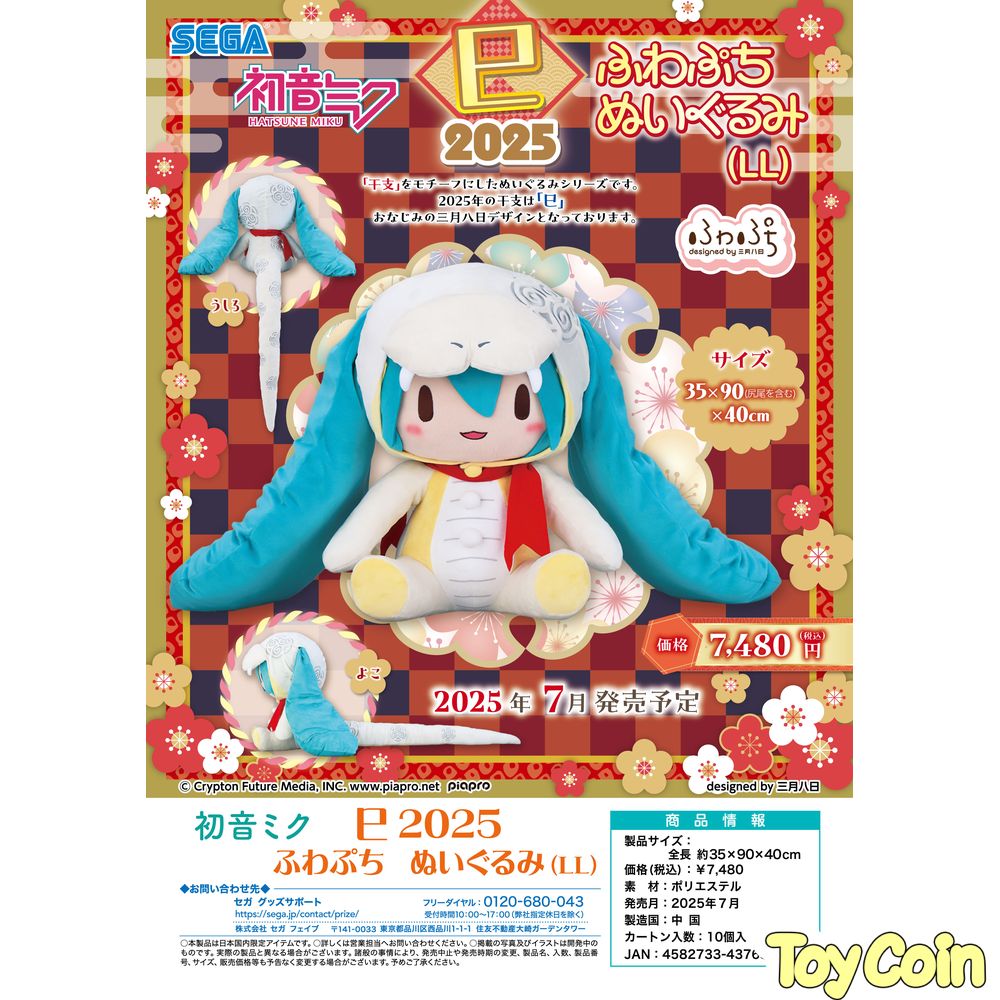 Hatsune Miku Snake 2025 Fuwa Petit Plush LL